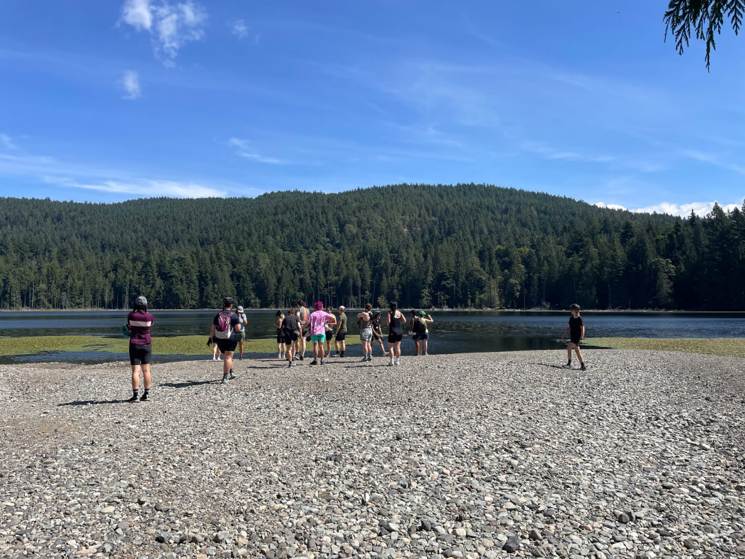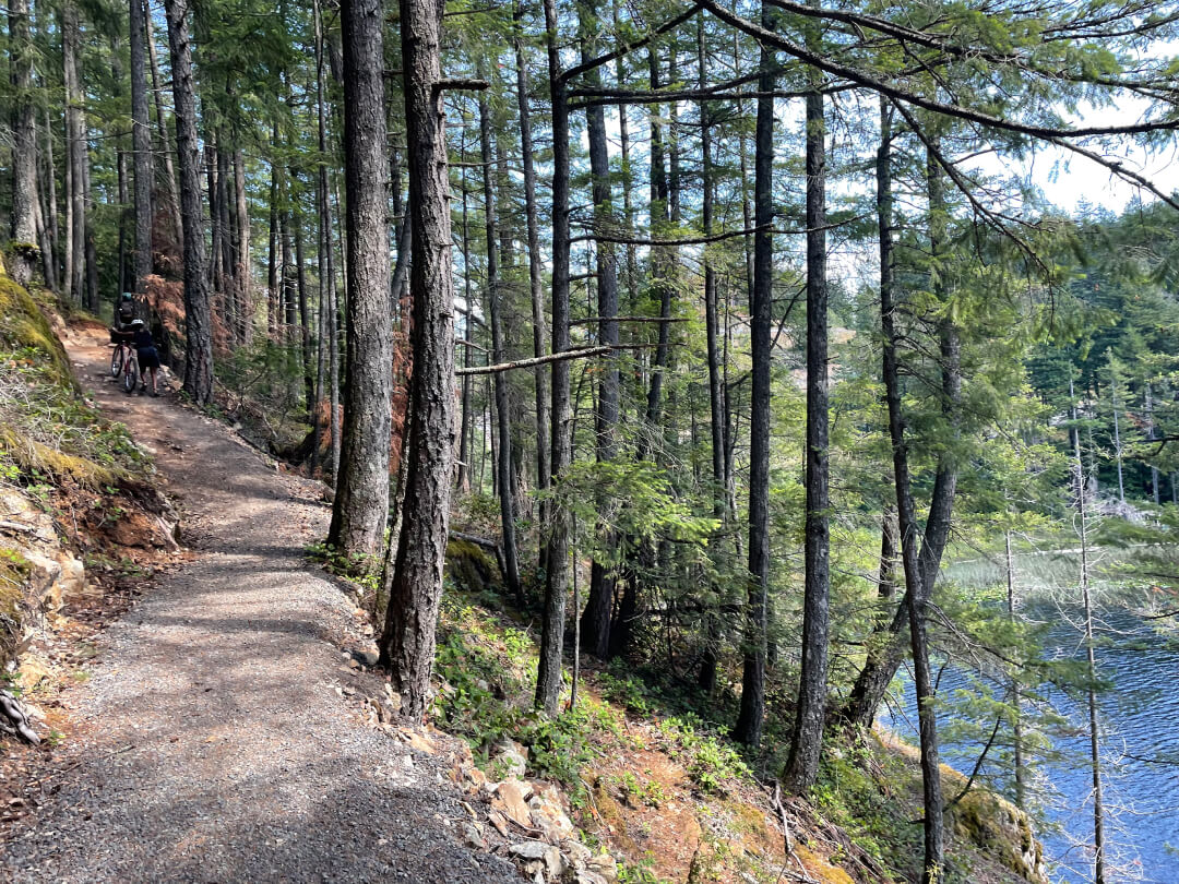 Continuing towards Grafton Lake, you may notice a few side single tracks by the road. They are fun and give you the option to avoid the pavement. Grafton Lake is a beautiful spot for gravel riding and swimming, so if you want to stop by later, after visiting the cidery, keep going. You don’t need to worry about missing out on it, as you will be riding back the same road to the ferry terminal as you are to the cidery.